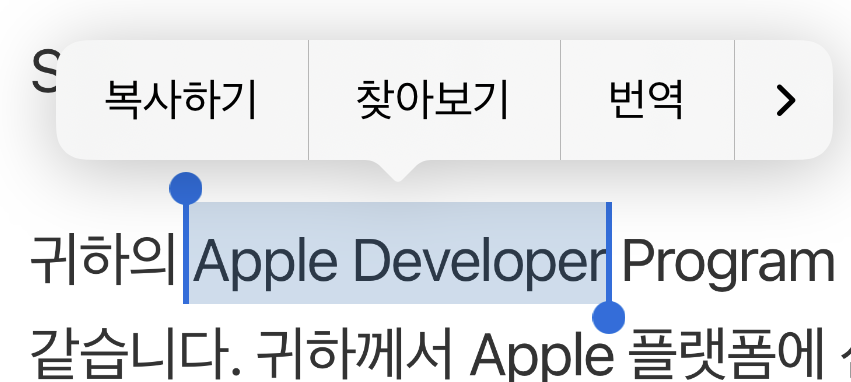 - 멀티 터치 제스터를 사용하여 edit menu를 표시할 때는 시스템에서 컴팩트한 가로 스타일을 표시