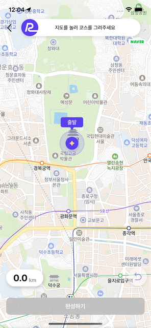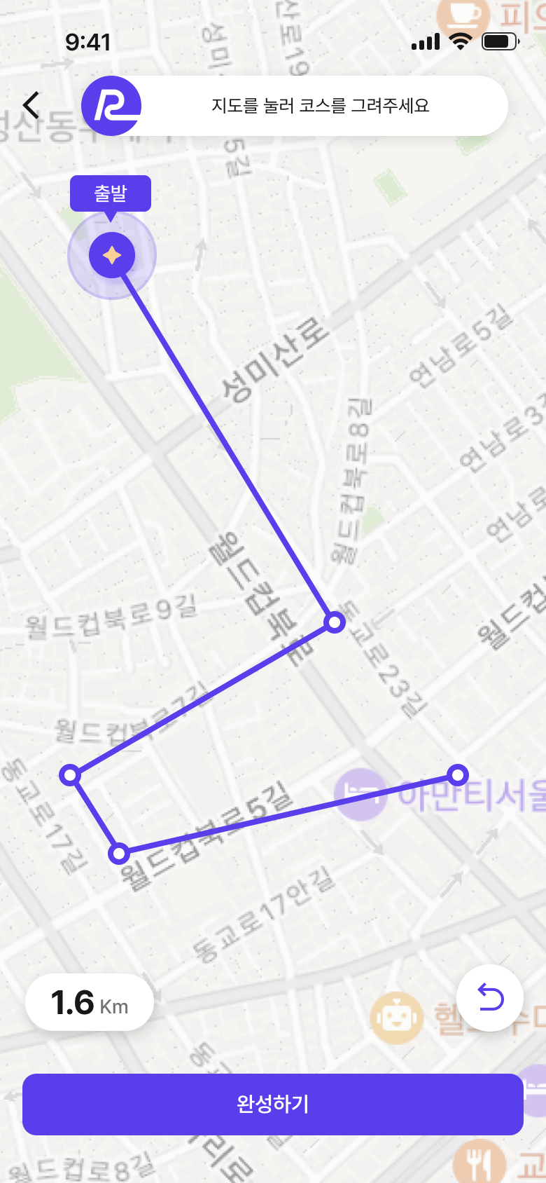사용자가 직접 지도를 터치하여 달리기 코스를 그리는 것이 주요 요구사항이었습니다.