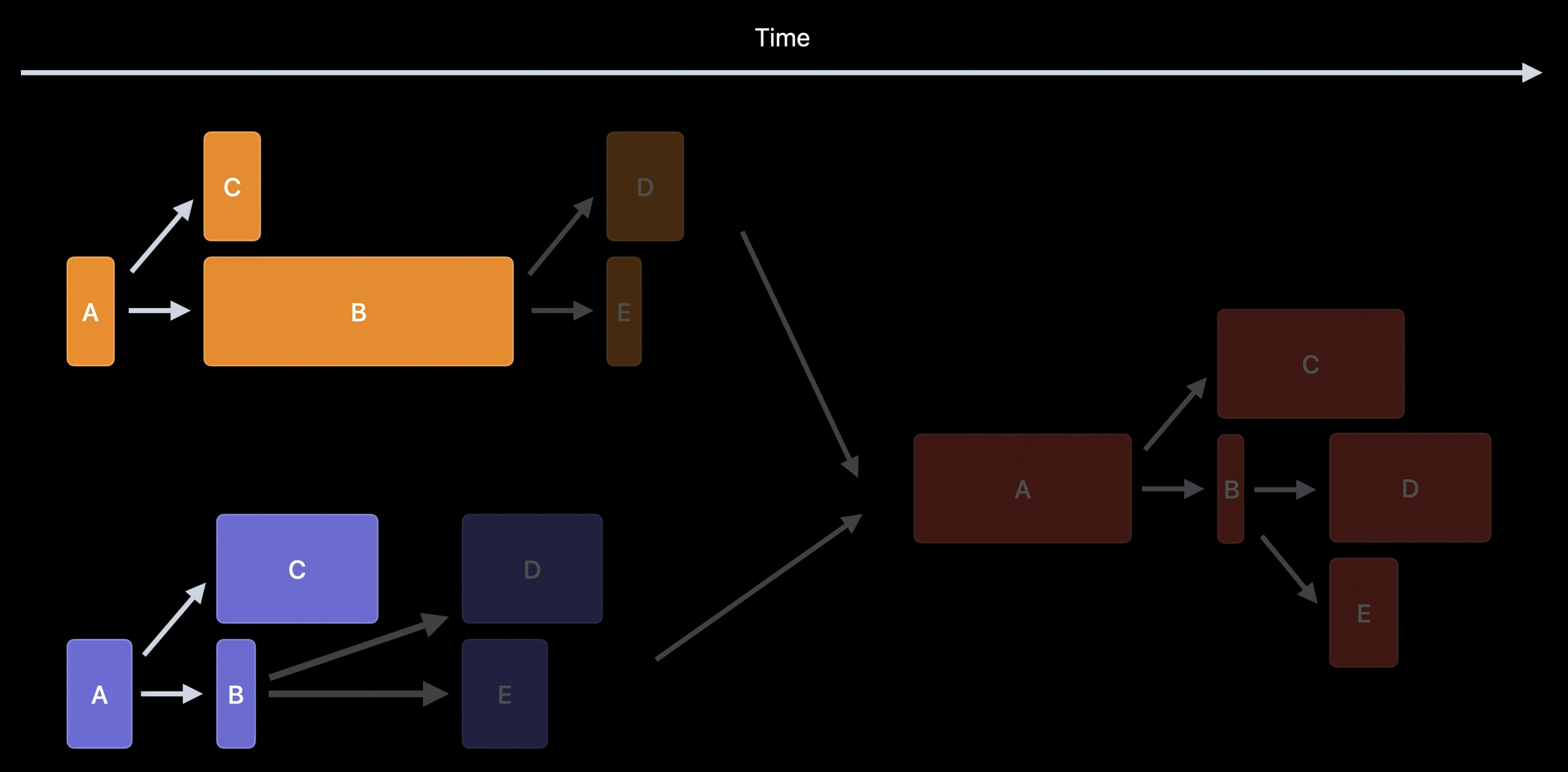 - 그 결과 타겟 B는 링킹을 빌드 초기에 시작할 수 있다.