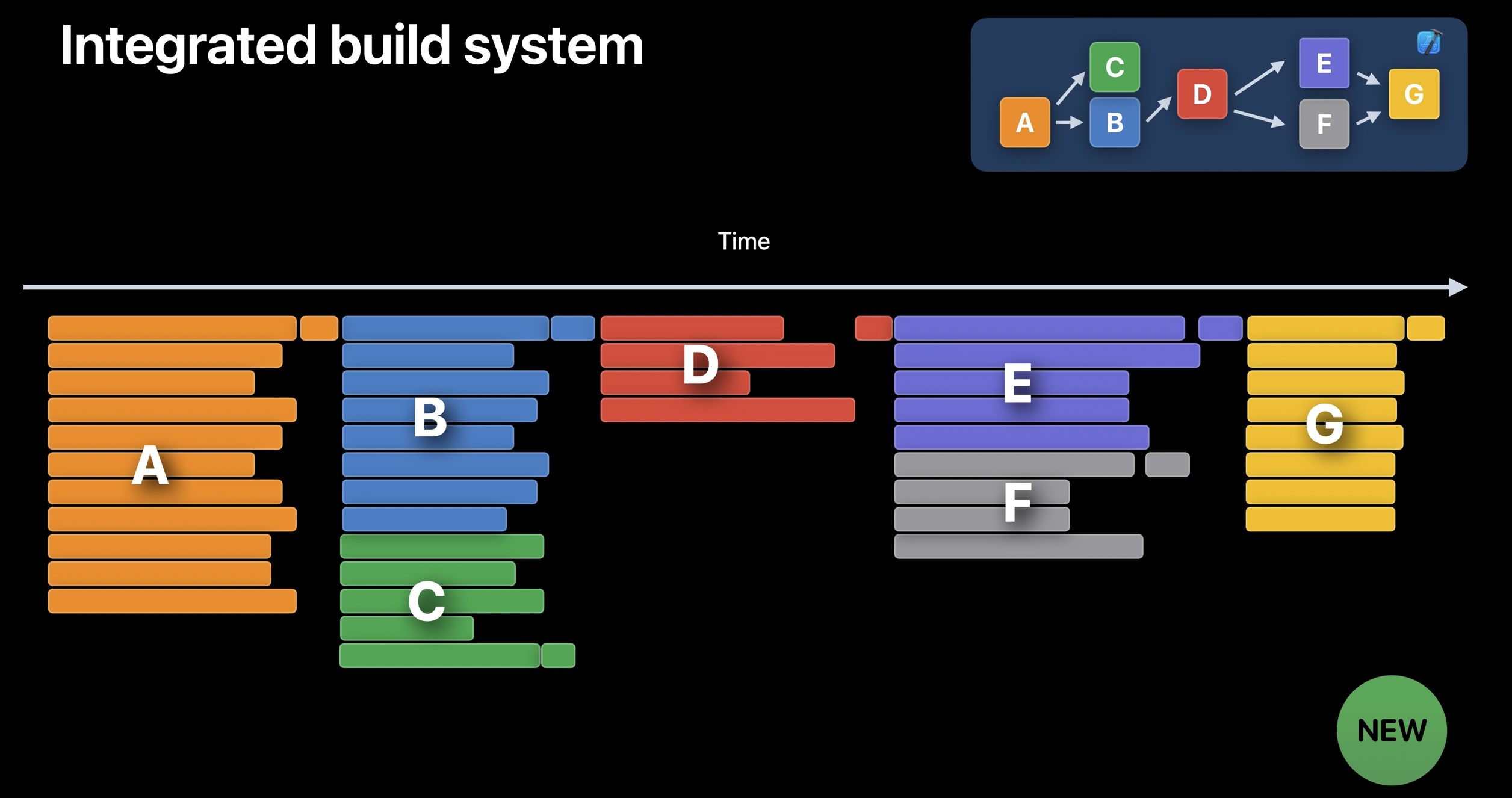 - 이 path를 단축하여 높은 수준의 병렬화 및 확장성을 가진 빌드 그래프를 생성하는 것이 이 WWDC의 내용의 핵심이다.