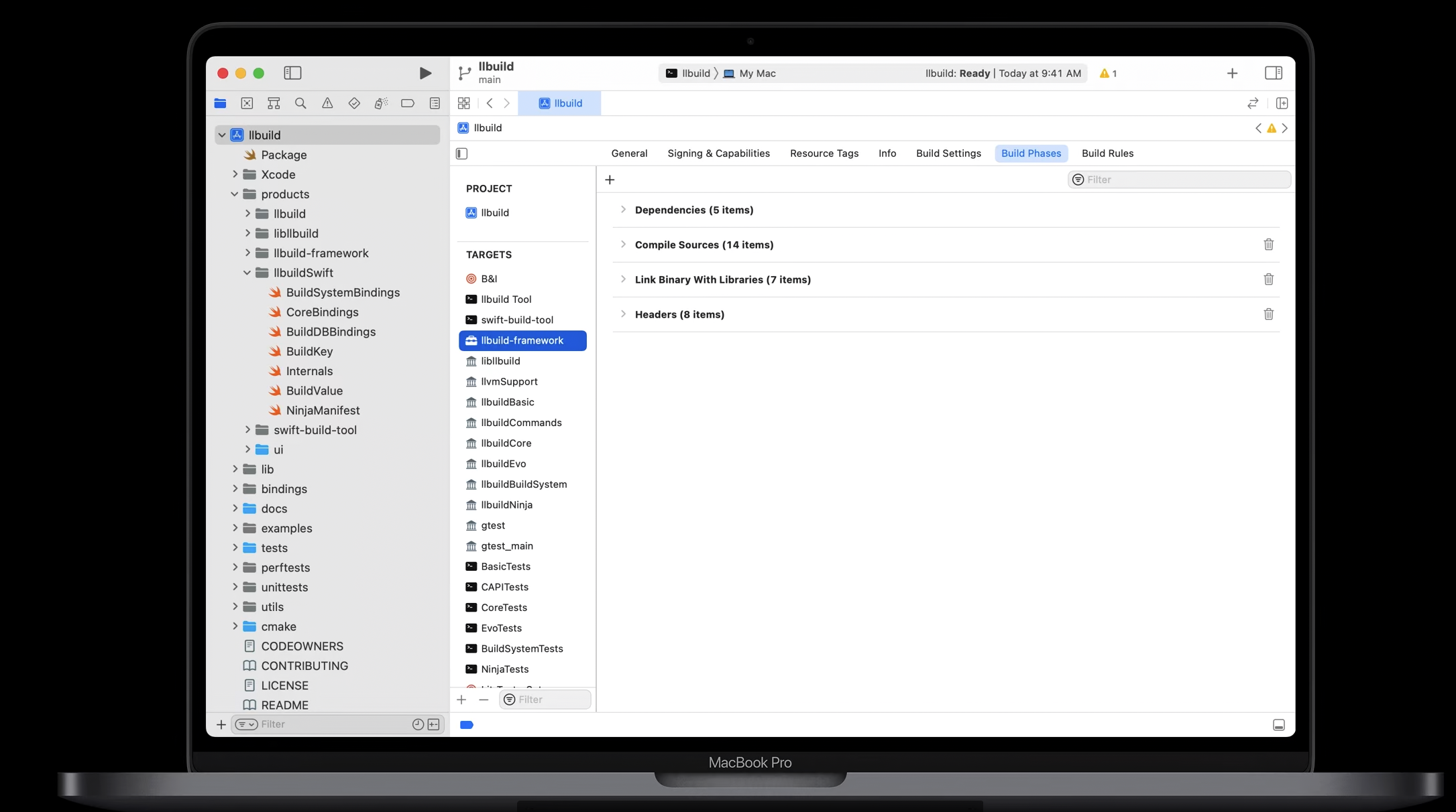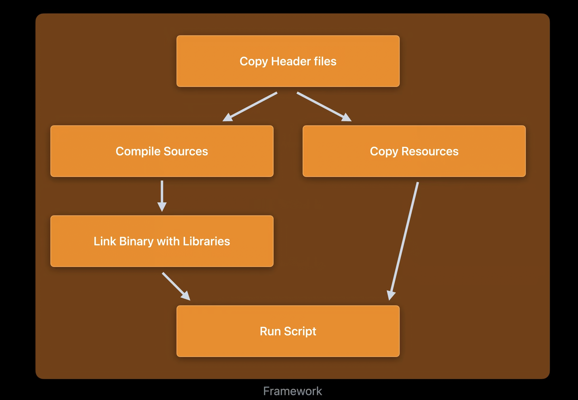 - 에셋 컴파일링, 파일 복사 또는 codesigning과 같은 여러 작업들이 합쳐져 Framework 타겟의 빌드를 나타낸다.